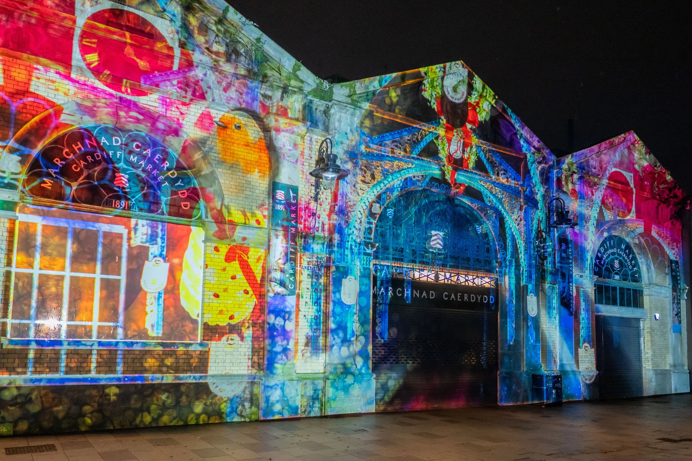 The installations have transformed Cardiff Market and Cardiff Central Station into free, large-scale festive landmarks, using light, colour and Welsh storytelling to encourage visitors to explore, shop, dine and ultimately stay longer in the city centre.