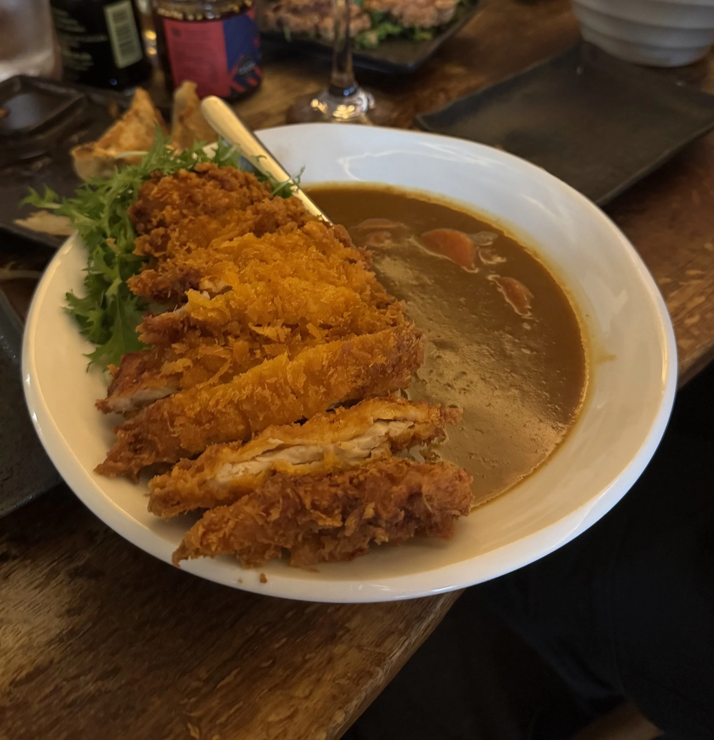 I also tried the chicken thigh katsu curry, which was £14.95. Fresh panko breadcrumbs, fried crisp, served with Japanese vegetable curry, rice and mizuna. It was exactly what you want from a katsu. Crunchy on the outside, tender inside, curry that’s sweet, savoury and super comforting. The kind of plate you could order on a crap day and feel instantly better about life.
